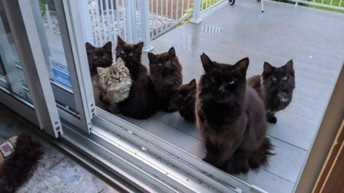 Then one lovely morning, Usagi showed up with a heartwarming surprise. Instead of coming alone, she appeared on Lisianne’s porch with six tiny kittens in tow—bringing her whole little family to the woman she trusted most. It was a moment of pure joy and astonishment.