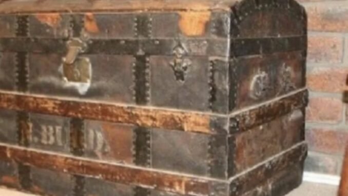 Under rivningsarbetet tog byggarbetarna bort de gamla trägolven. Till sin stora förvåning hittade de en massiv kista som hade varit dold där. Med sitt slitna trä och sina rostiga järnbeslag såg den ut att ha legat gömd i över hundra år. Nyfikna bestämde sig arbetarna för att filma öppningen.