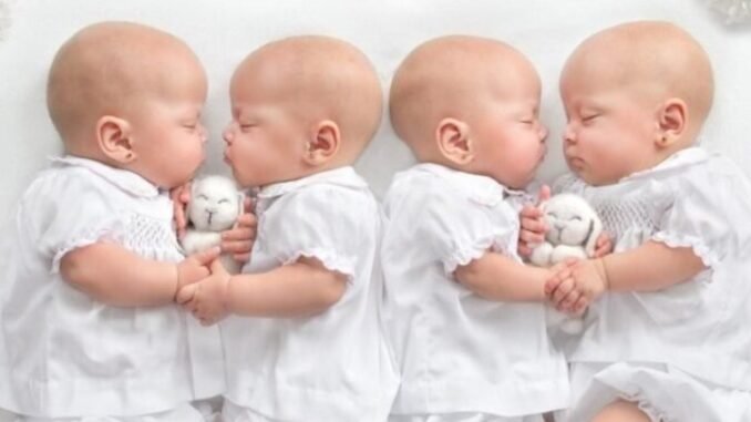 Kort efter födseln blev det tydligt hur slående lika flickorna var. Genetiska tester bekräftade senare att de faktiskt var monozygota fyrlingar, med identiskt DNA.