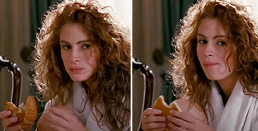Ett av filmens mest omtalade misstag sker under frukostscenen. Vivian börjar äta en croissant, men i nästa klipp har den förvandlats till en pannkaka. Regissören Garry Marshall behöll scenen trots felet – vilket senare blev en kultdetalj för fansen. Liknande kontinuitetsmissar syns även i andra scener, som när Edwards skor försvinner och återkommer, eller när en hundradollarsedel mystiskt byter plats.