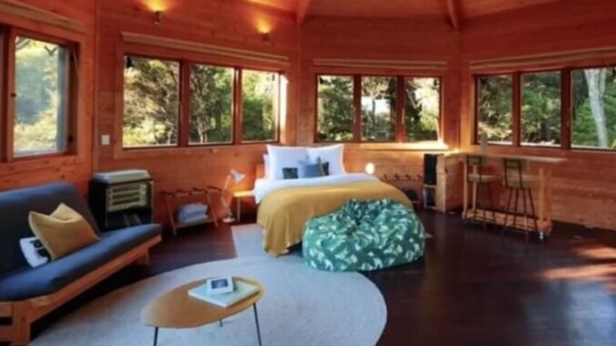 A pesar de su encanto rústico, la casa en el árbol no renuncia a la comodidad. En su interior, los visitantes encuentran una cálida cama doble, una cocina totalmente equipada y un baño moderno.