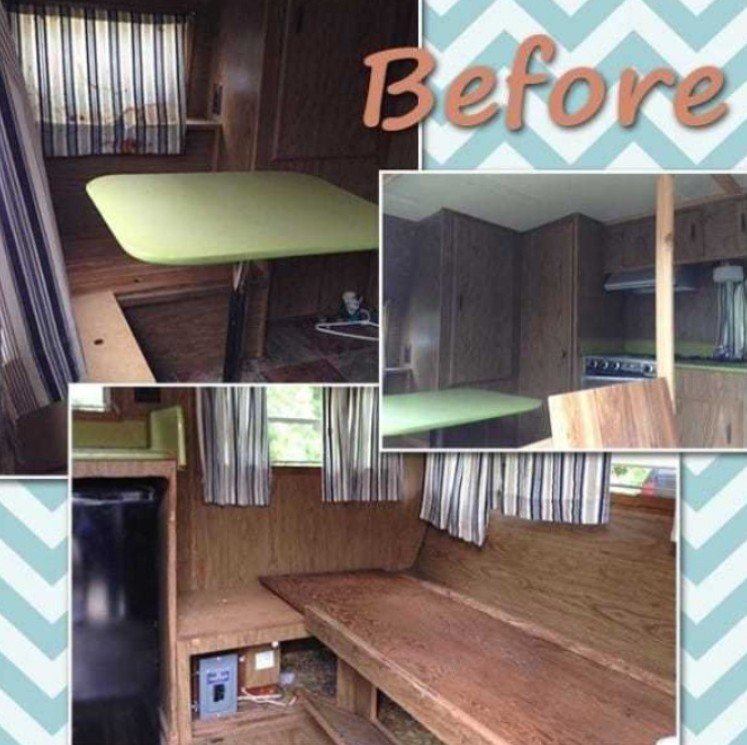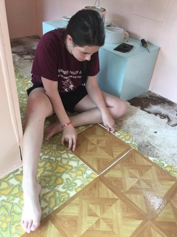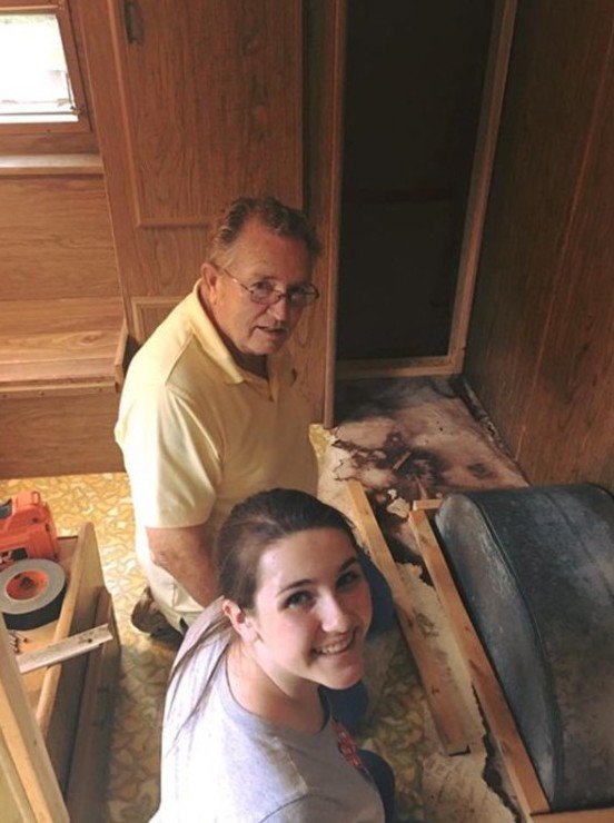 Det första steget var att ta bort det gamla golvet. Tillsammans tömde familjen hela husvagnen och gjorde den redo för en total förvandling.