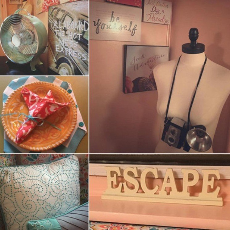 Inuti valde hon persikofärgade väggar med detaljer i aqua-blått. Det gamla 70-talsgolvet ersattes med ett nytt golv i trä-look, vilket helt förändrade känslan i rummet och gjorde det varmt och inbjudande.