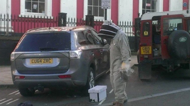 ”Drottningen verkar ha blivit instängd i bilen, och de andra bina ville helt enkelt inte lämna henne,” sa Roger. ”När vi frigjorde henne återvände hon till sitt samhälle. Det är väldigt ovanligt att en svärm följer en bil i två dagar.”