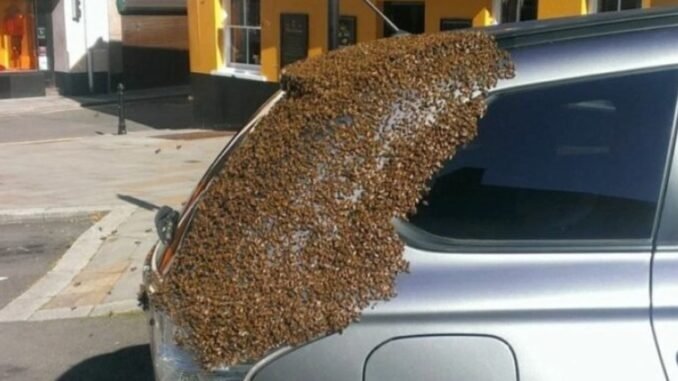 När Carol Howarth från Haverfordwest i Wales gav sig ut på en snabb shoppingtur förväntade hon sig en helt vanlig dag. Men när hon kom tillbaka till parkeringen möttes hon av en oväntad syn: tusentals bin hade samlats runt bakdelen av hennes bil och täckte en stor del av den.