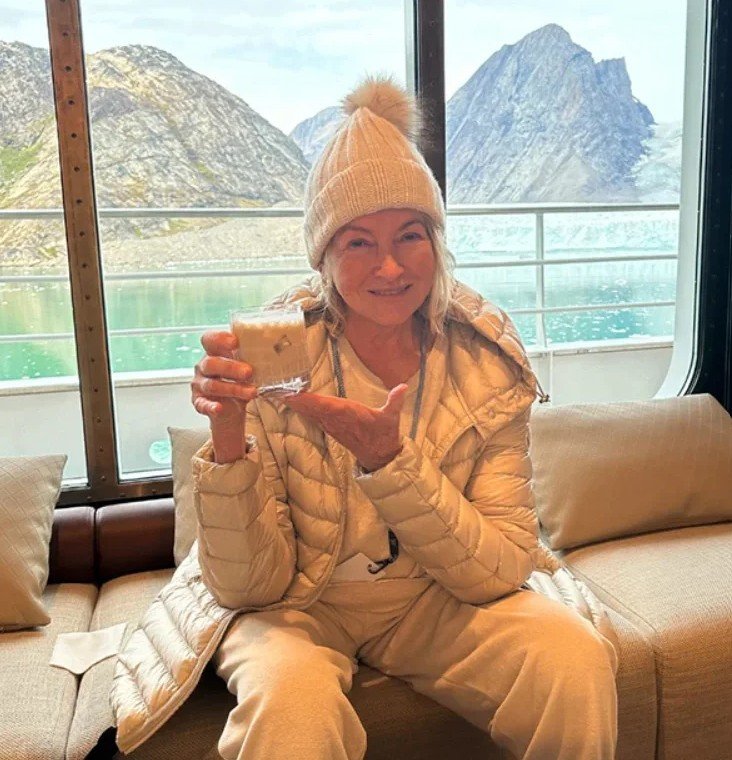 At the end of August, Stewart shared a photo from a cruise along the east coast of Greenland. In the image, she is seen enjoying cocktails, accompanied by the caption: