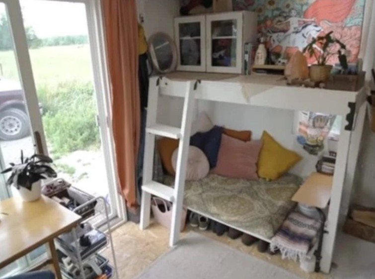 För denna kvinna handlade det dock inte om en trend – utan om att bygga upp sitt liv igen. Med begränsad budget och liten yta förvandlade hon en enkel träbyggnad till ett varmt, funktionellt och personligt hem.