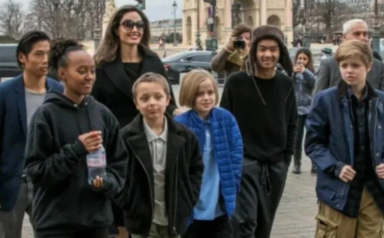 Su look se completó con un maquillaje discreto, un recogido sencillo, pendientes de aro y bailarinas, creando un conjunto refinado pero sin esfuerzo. Angelina Jolie, defensora desde hace años de la moda sostenible y consciente, ha transmitido claramente estos valores a sus hijos.