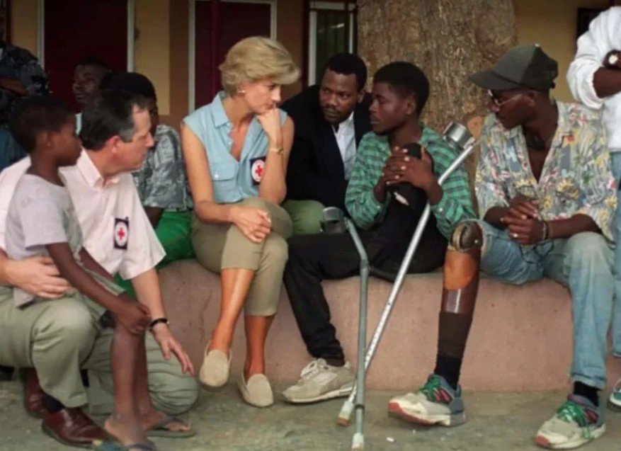 Ein denkwürdiges Bild aus Luanda, Angola, zeigt sie bei einem Besuch in einem orthopädischen Zentrum, wo sie Landminenopfer traf – ein eindrucksvolles Beispiel für ihr Engagement und ihre Menschlichkeit.