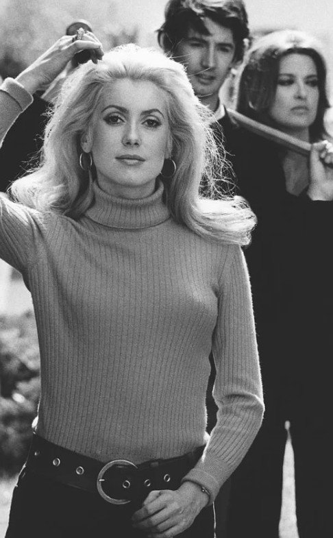 Issue d’une famille d’acteurs, Deneuve fit ses premiers pas au cinéma adolescente, dans Les Collégiennes (1957). Sa véritable révélation arriva en 1964 avec Les Parapluies de Cherbourg de Jacques Demy. Ce rôle révéla son image de grâce raffinée et fit d’elle l’une des figures les plus captivantes du cinéma français.