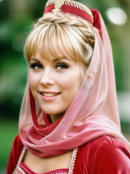 Son rôle le plus marquant arrive dans les années 1960 avec la célèbre sitcom I Dream of Jeannie, dans laquelle elle incarne la pétillante et inoubliable Jeannie. Sa performance a apporté chaleur, humour et une touche de magie dans les foyers, faisant d’elle un symbole durable de joie et d’imagination.